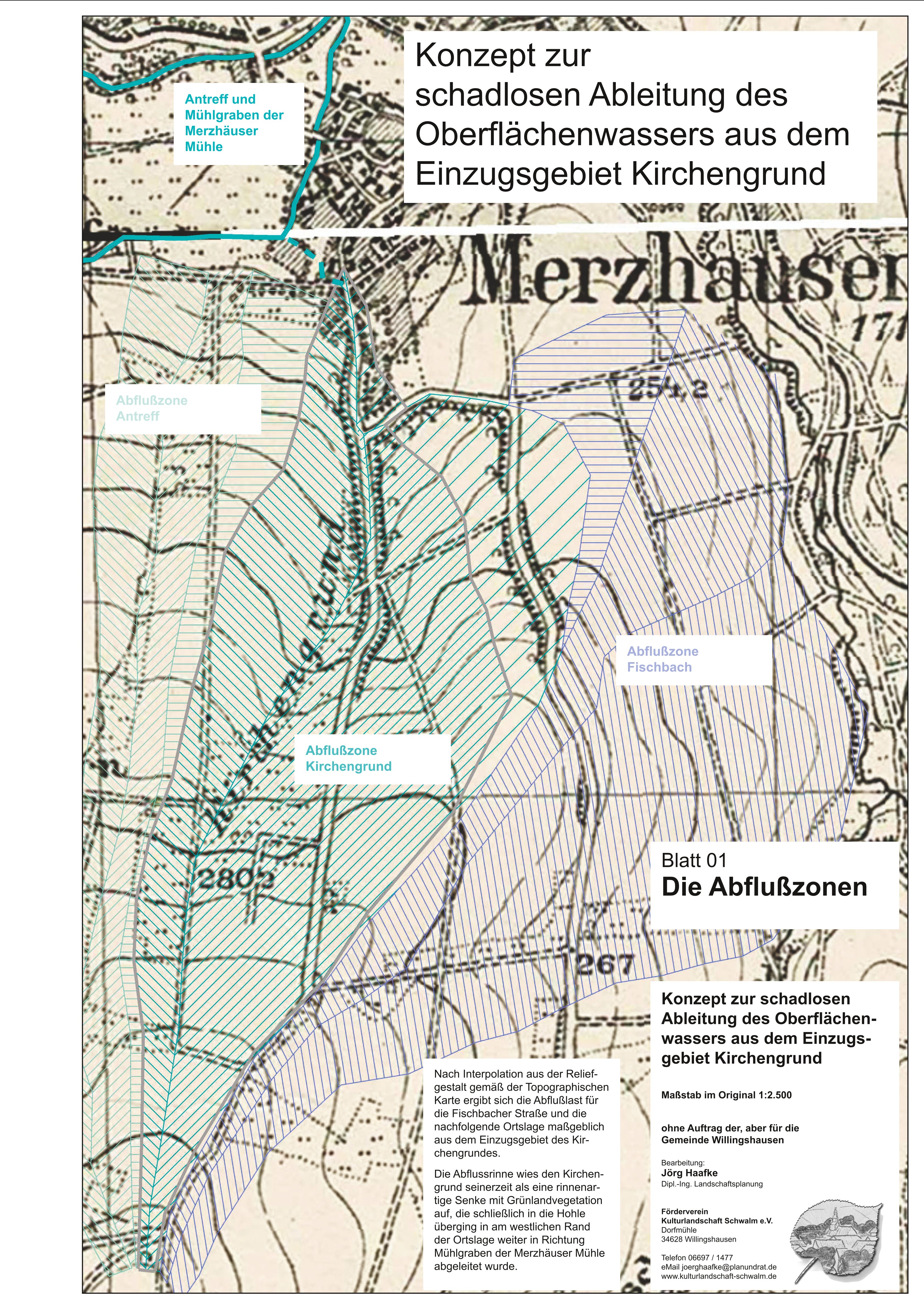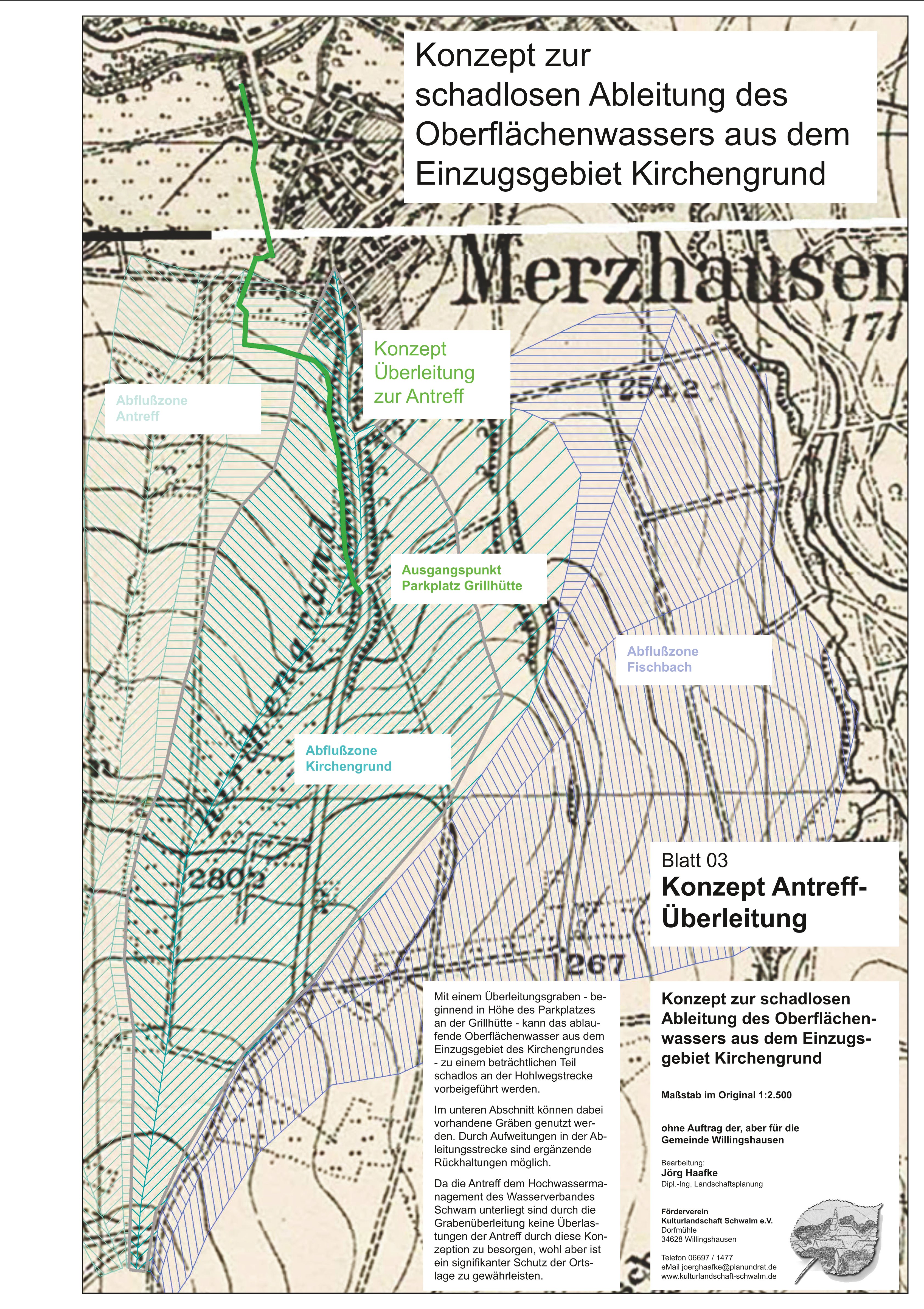 Der Förderverein Kulturlandschaft Schwalm e.V. hat der Gemeinde Willingshausen zur Problematik der Überschwemmungen in Merzhausen eine Konzeption zur besseren Ableitung des Oberflächenwassers vorgelegt. Die Einzelheiten sind der hier dokumentierten Ausarbeitung zu entnehmen.